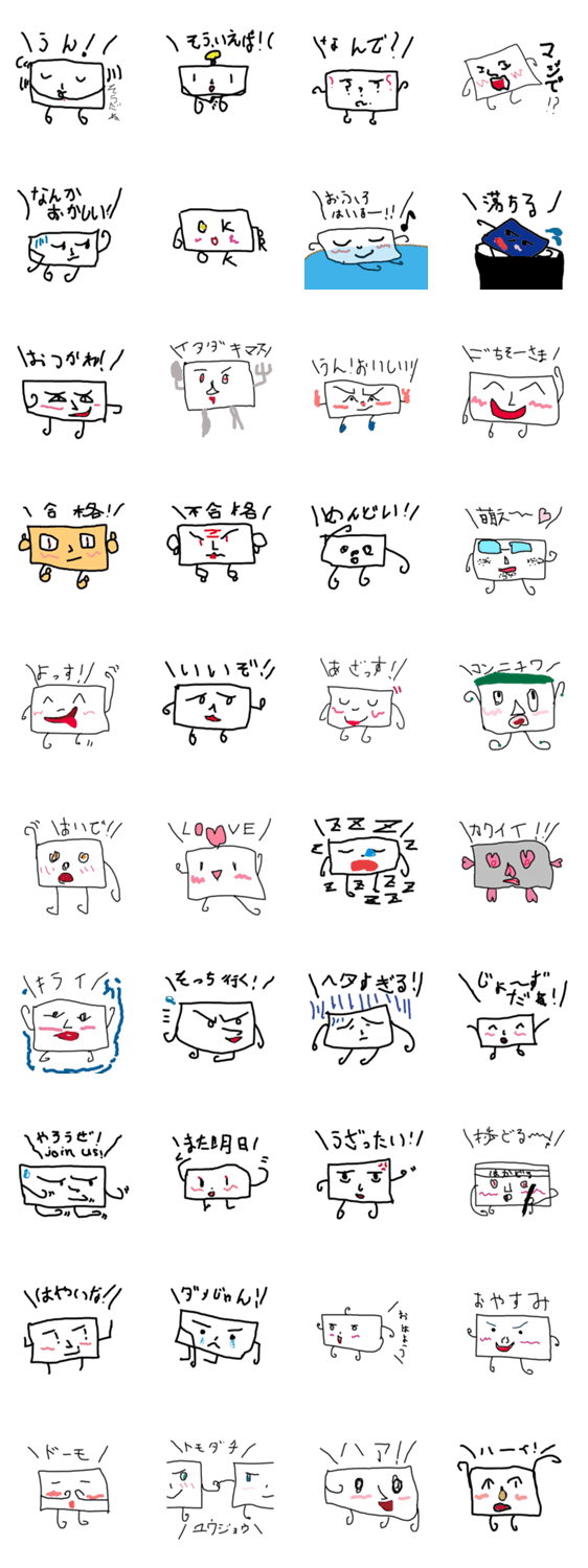 オリジナルキャラクターの四角君がきたよ。みんなこれを使ってコミュ力アップだ!!
