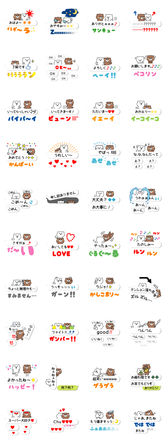 毎日使えるくまとねこのふきだしのスタンプです。子熊とたまねこの楽しいスタンプです。