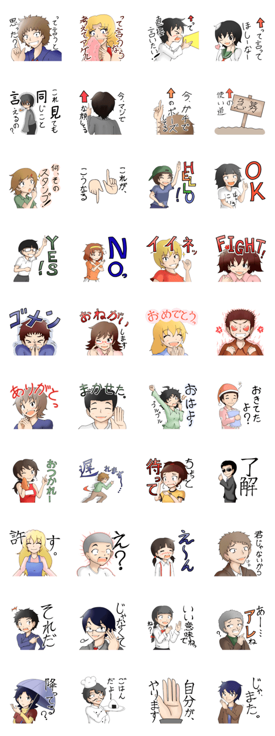 他のスタンプや画像の下で使えるスタンプです。普通のあいさつ等も多めにあるので、この中で組み合わせても遊べます。
