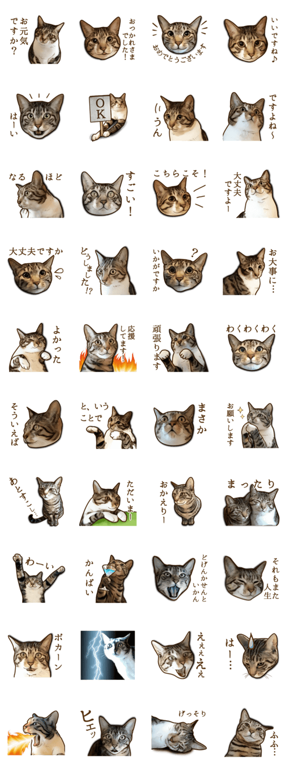 キジ白猫のペンネとキジトラ猫のコロネによるリアル猫スタンプ第2弾です。今回も敬語メインで、今日友達になった人から毎日一緒にいる家族まで、相手を選ばず活躍します♪