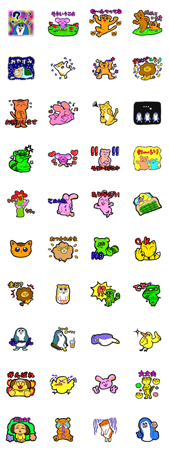 ちょっぴりかわいくてシュールなどうぶつたちのスタンプです