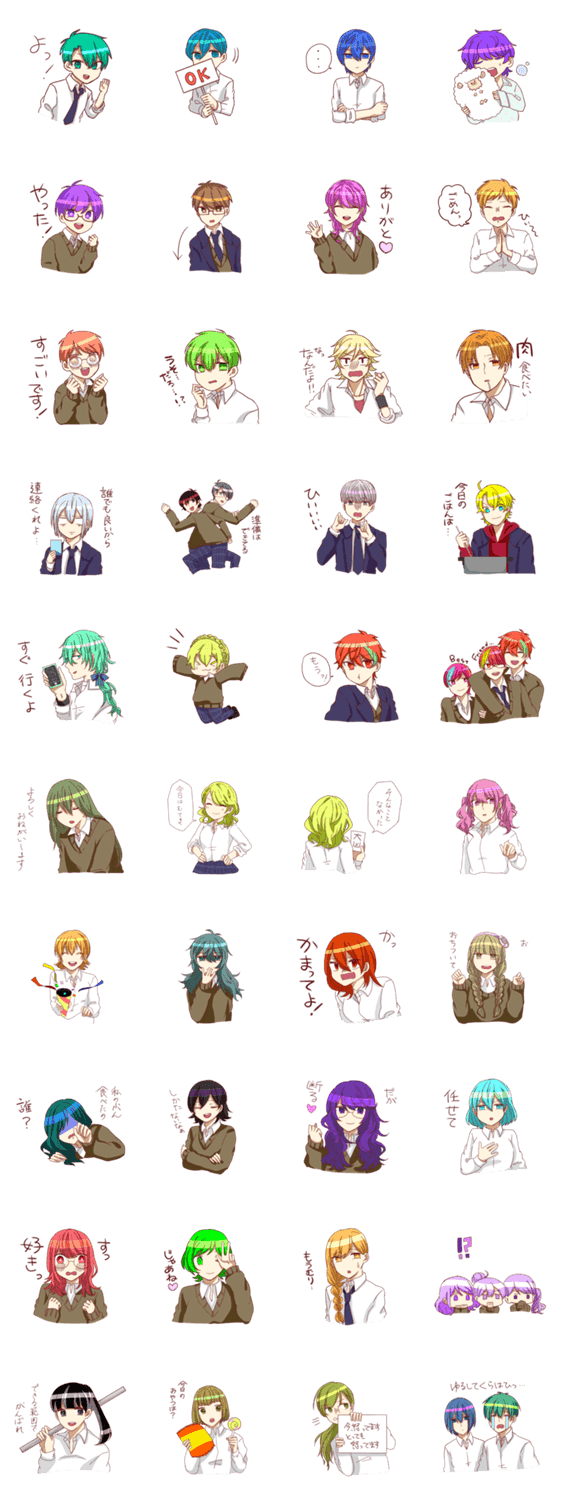 クラスメイトのみんなでわいわいしているスタンプです。個性豊かなキャラたちが普段使う言葉や様々な場面で使えるスタンプを集めました。友達や家族の日常会話にどうぞ。