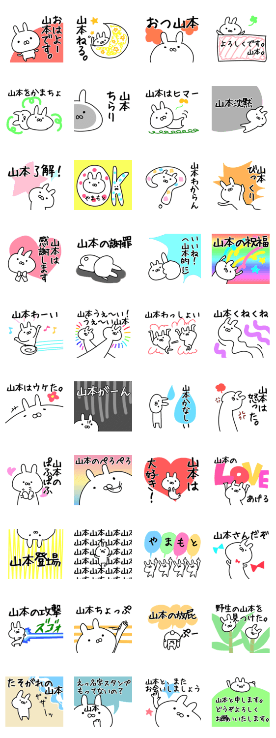 山本さんが使う用のウサギの名前スタンプです。ゆるいうさぎなので、気負わず使えるよ。名字がやまもとさんの人はこのスタンプを送るべし。