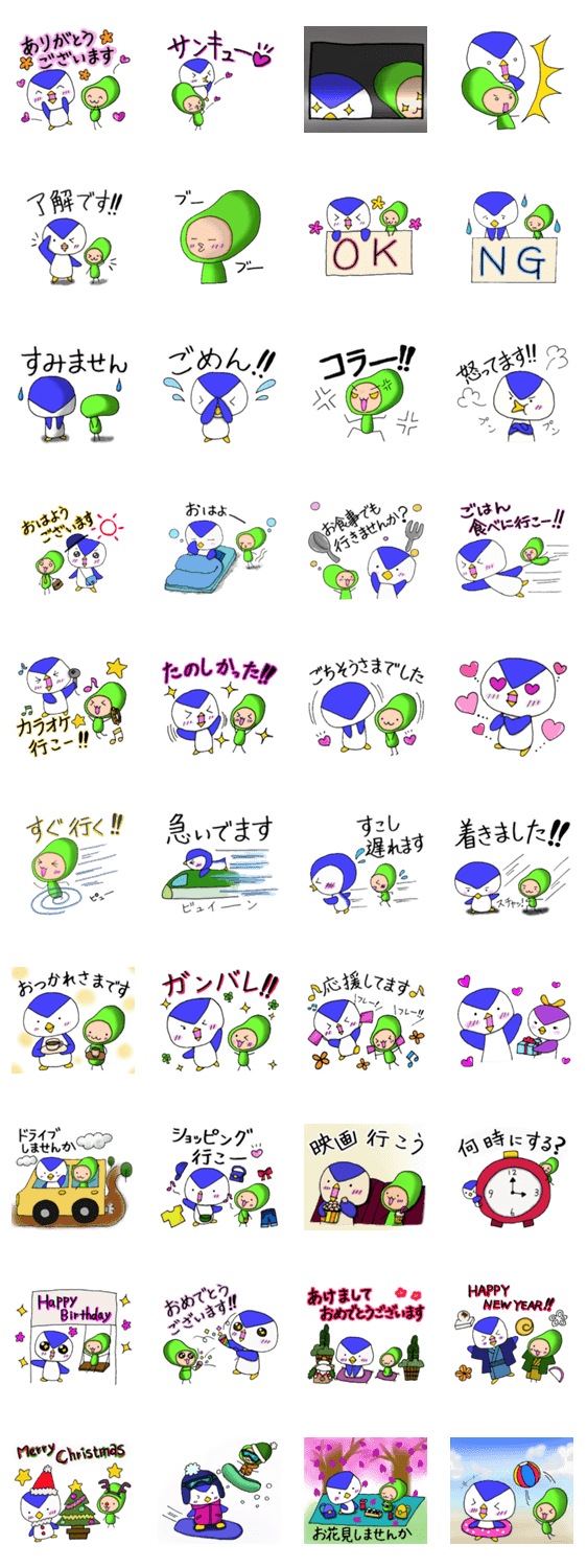 ペンさんとマメさんの第二弾です。色もきれいになり、メッセージ入りも増えて使いやすくなりました。一年中楽しくかわいく使えるスタンプです。