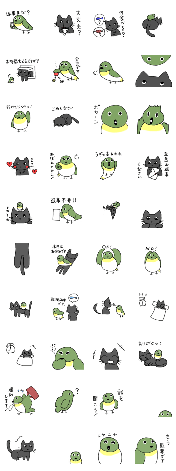 メジロとクロネコのスタンプです。日常会話にどうぞ。