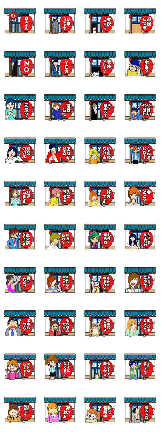 酒場の店先にかかる提灯はみんなの伝言板。思いを伝える言葉が会話を盛り上げます。