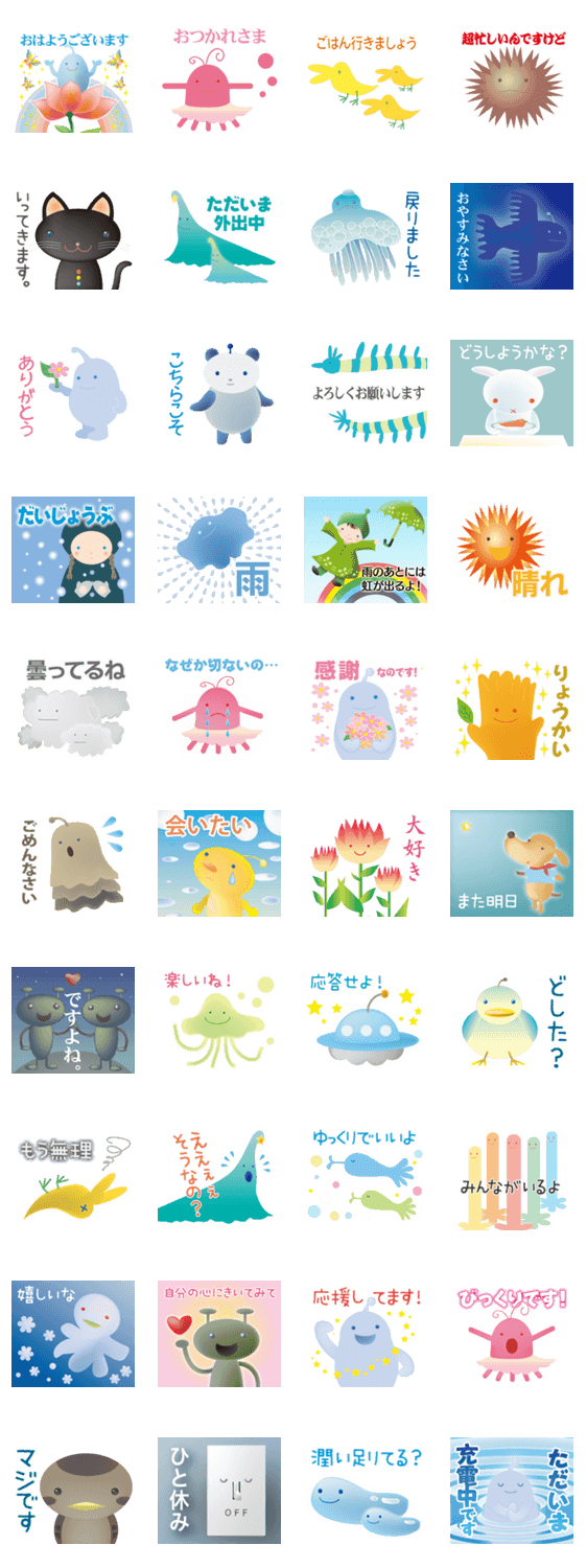 かさこの部屋の不思議な仲間達のスタンプです。ほっこり優しいスタンプです。