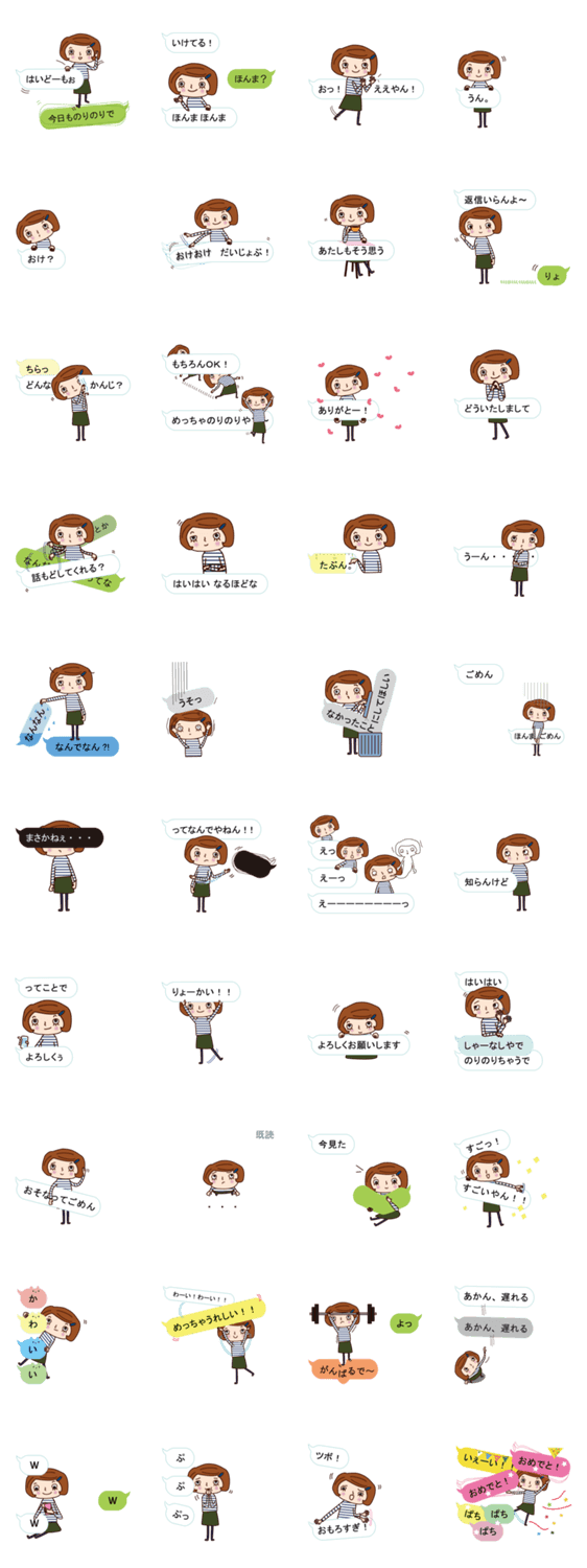 のりのりな女の子の吹き出しスタンプ。大人女子も主婦も使える楽しい吹き出しトークです。