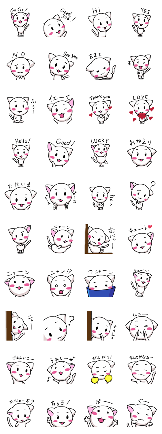 使いやすい白猫のスタンプ