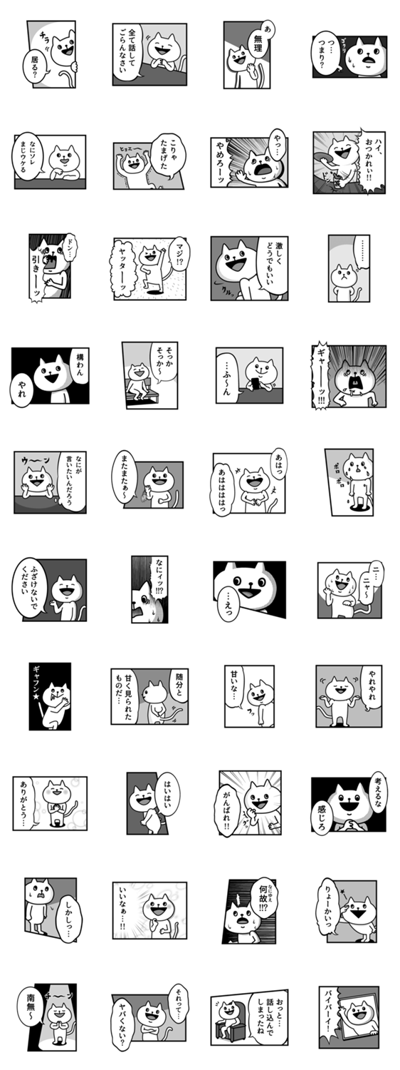 漫画の一コマのようなスタンプ。ちょっと人をイラッとさせるネコのスタンプです!