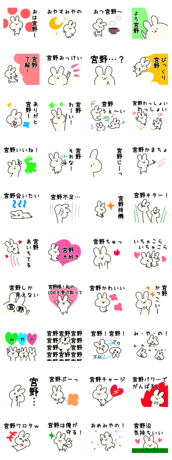 全国の宮野さんに使える名前スタンプです。名字がみやのの友達や親戚に送ってね。