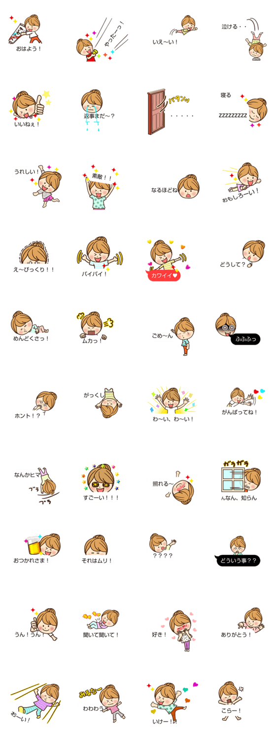 「ラブ素敵な彼女」のフキダシ編です。あらゆる場面で楽しく使えるように、使う頻度の高い言葉と楽しい絵柄を組み合わせてみました。