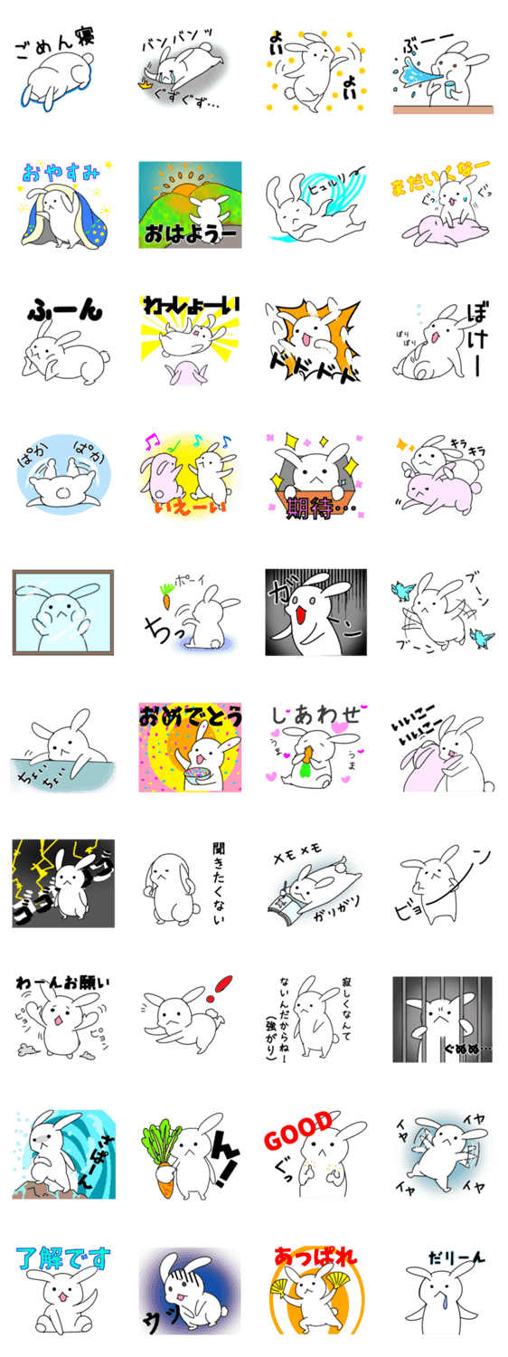 やわらかく抱きしめたくなるようなウサギのマスコットのスタンプです。かわいいウサギの「やわうさ」が、あなたをたのしくさせます。
