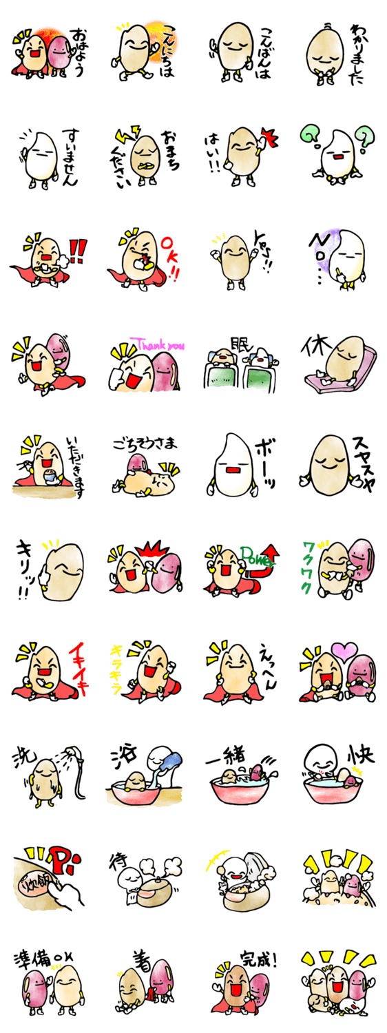 主食であるお米たちがワクワクしてイキイキしてキラキラ輝くスタンプの登場です!