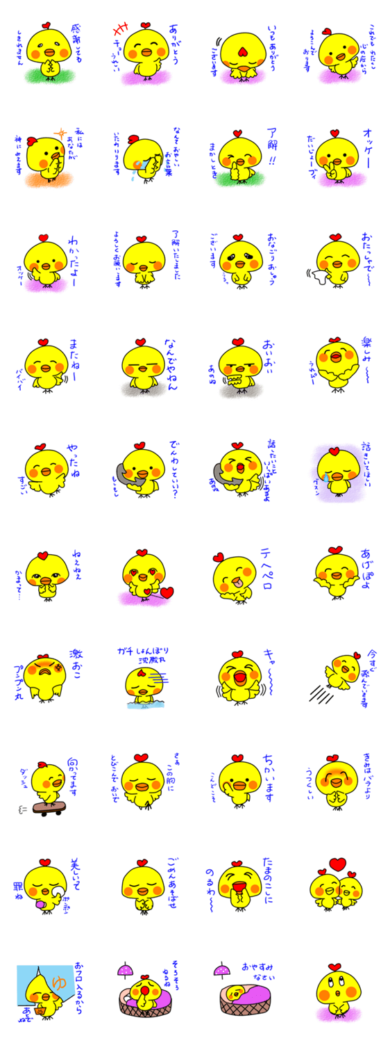 日常で使いやすい言葉を、色々な表現でひよこのピーコが面白おかしくしゃべります。