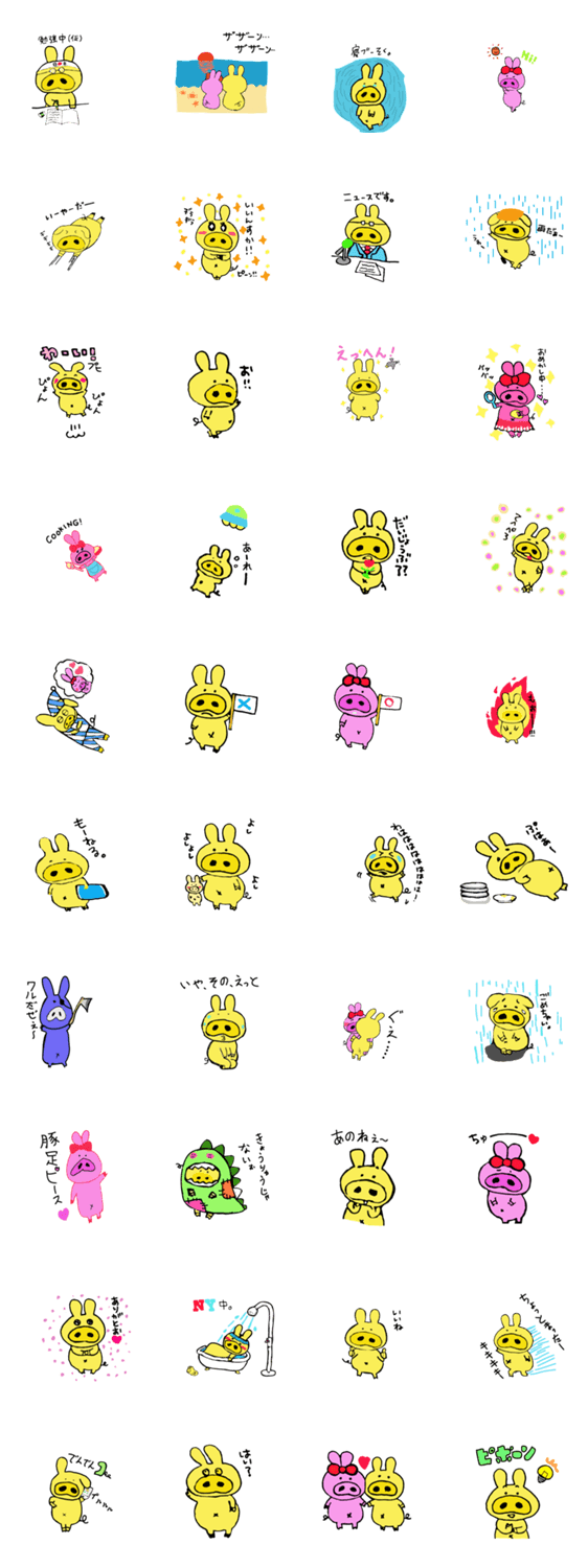 ぶたうさはうさぎとぶたをミックスしたキャラクターです。時々、ぶたうさの女の子が登場します。若年層に向けて作ったスタンプです。