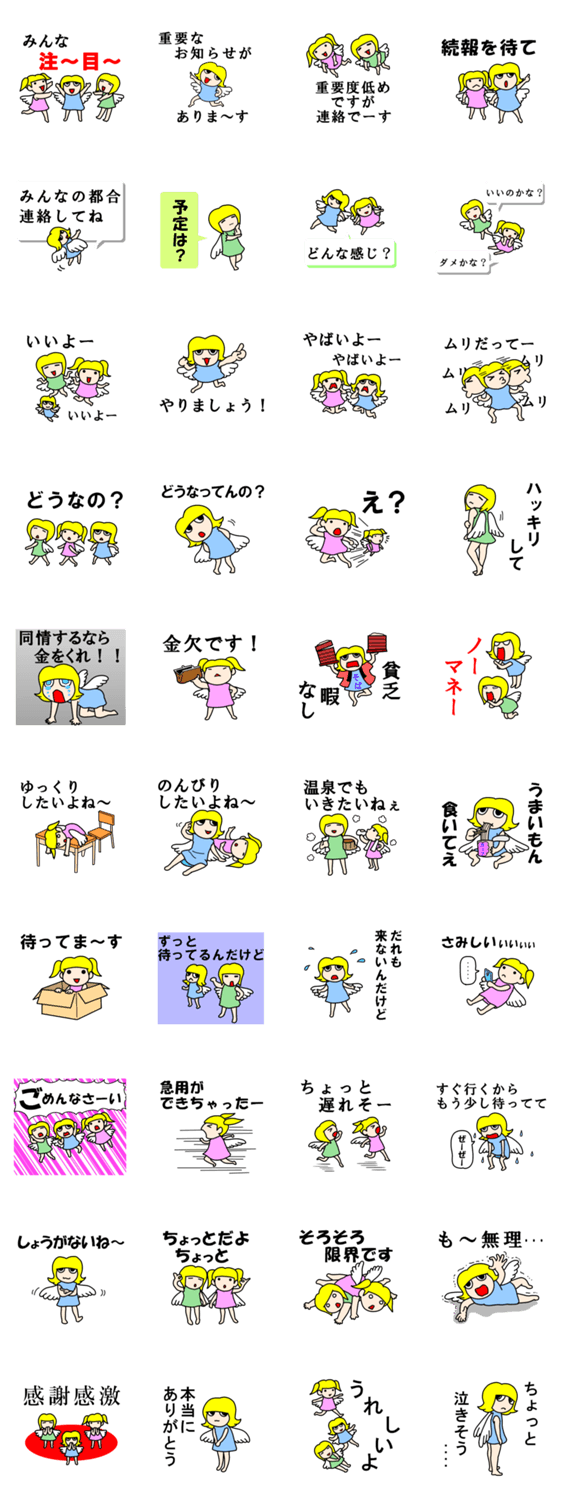 カワイイ天使達の、楽しい, ほのぼのとしたスタンプの第二弾です。