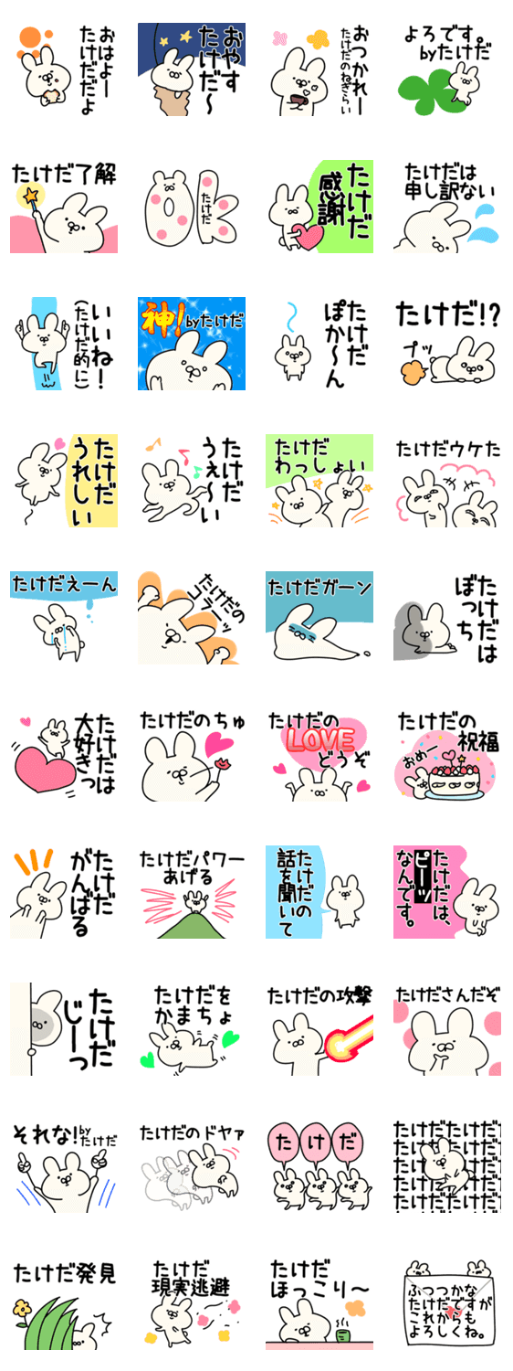 たけだ(武田・竹田)さんが使う用うさぎの名前スタンプです。名字がたけださんの人はこのスタンプをどうぞ。