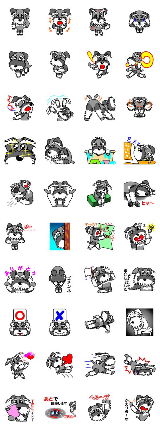 久々の新キャラ「むしゅた~」第1弾。シュナウザー犬?をモデルにした日常使いのスタンプ。 JINSTAMP0071