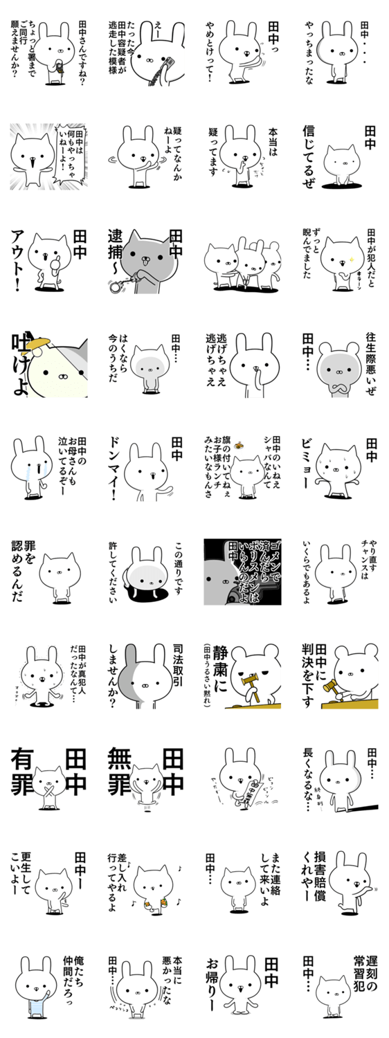 半分ネタで楽しんで作りました。疑惑のかわいいちょいワルウサギ達が田中容疑者をディスってます笑。冗談の分かる全国の田中さんにどうぞ。(ウサギ、ネコ、クマが登場)