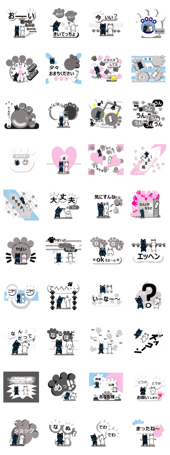 黒と白の猫と肉球の世界のスタンプ第2弾です。