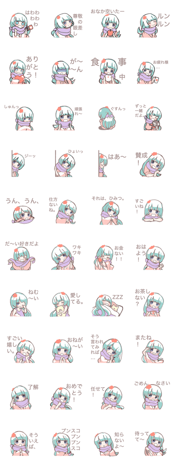 ピンク色の和服を着た女の子のスタンプです。日常会話で使えます。