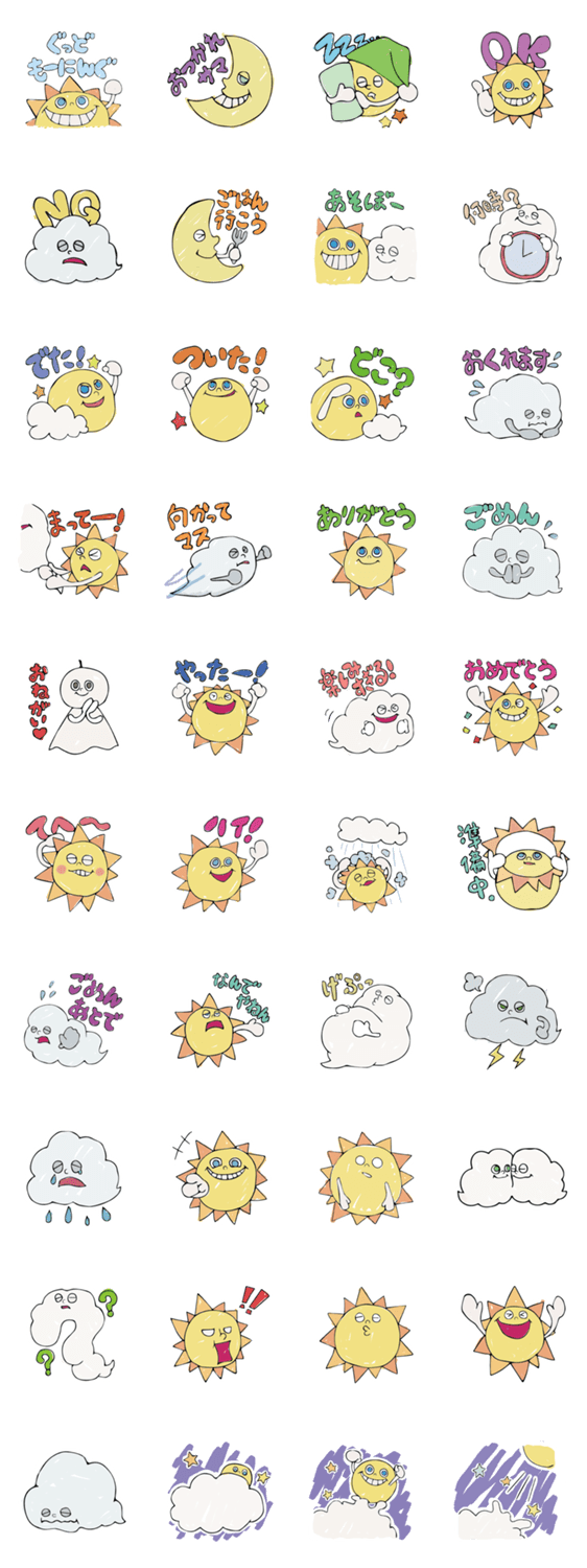 太陽や雲たちの日常で使いやすいスタンプです。