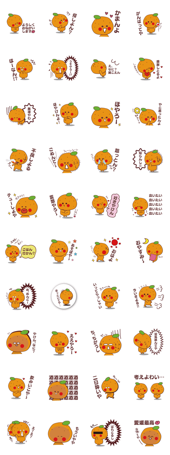 愛媛の特産物「みかん」がモチーフ!!可愛い方言を使った日常会話に注目。様々な場面でとにかく使いやすさ満点です。