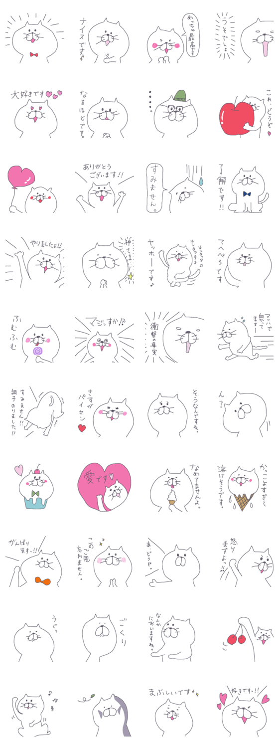 スイーツが大好きなマーヤにゃんこの敬語スタンプです。時にくだけてるのがポイント♪