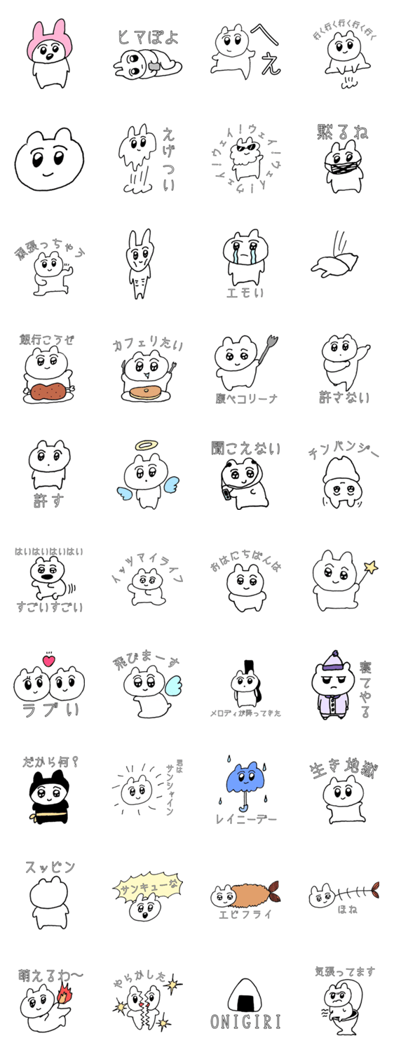 可愛らしい顔をした生意気なウサギちゃんのスタンプです。