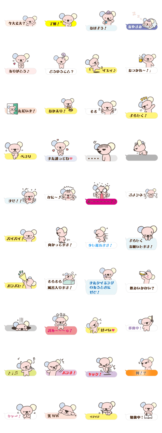 かわいいパステルカラーのコアラ。第1弾。吹き出しタイプ。