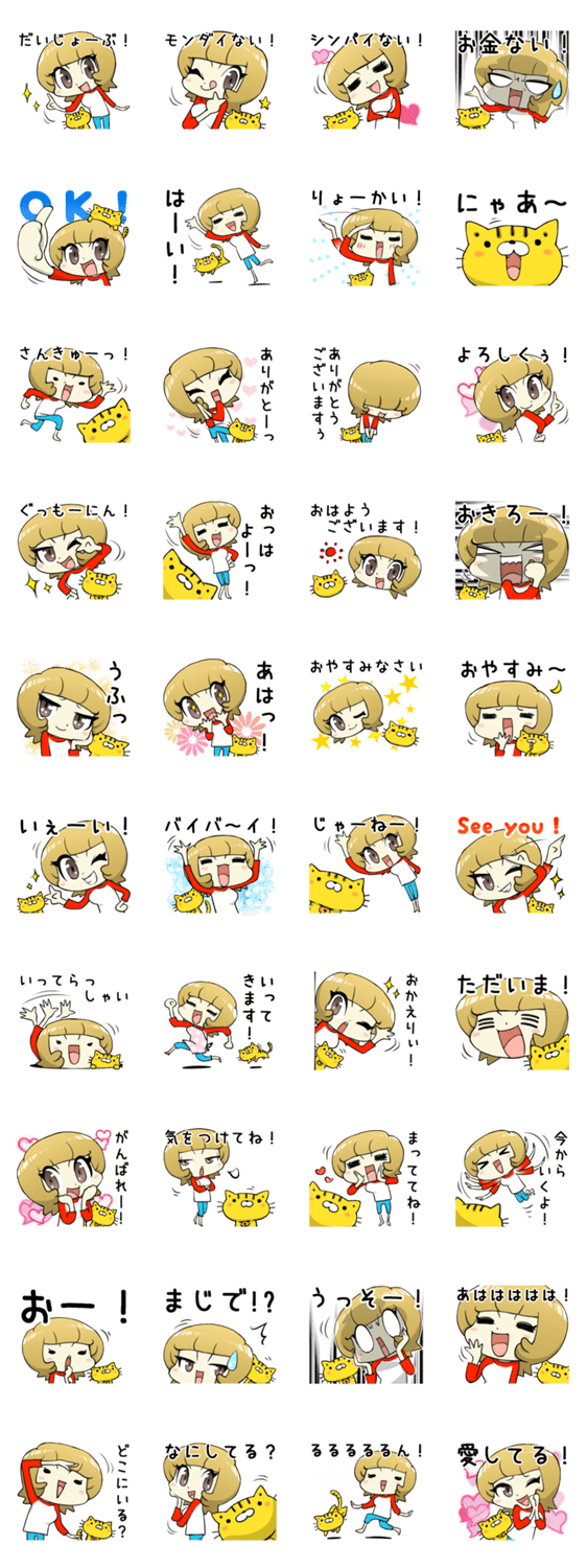 猫のグミととにかく陽気なママの可愛くて楽しいスタンプです。サブキャラのトラ猫のグミが本当に可愛いですよ。明るく元気に使ってくださいね~。