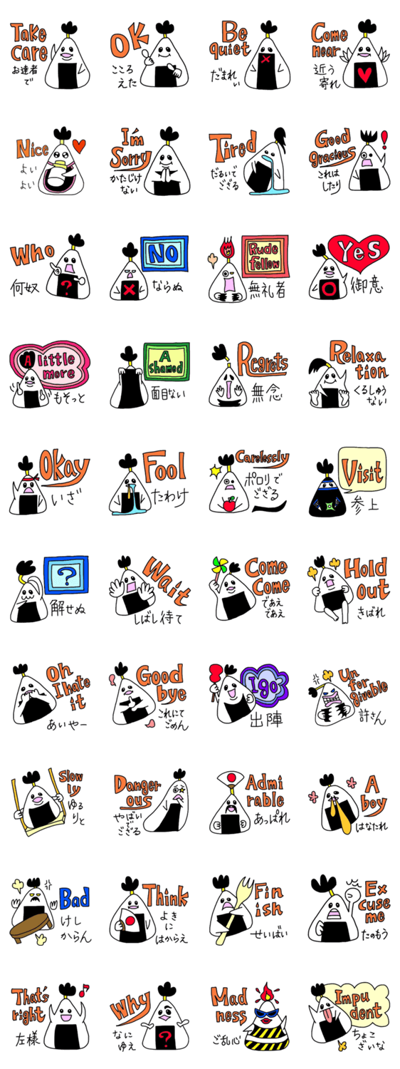 ちょんまげおむすびが、侍言葉で話す、かわいいスタンプです。