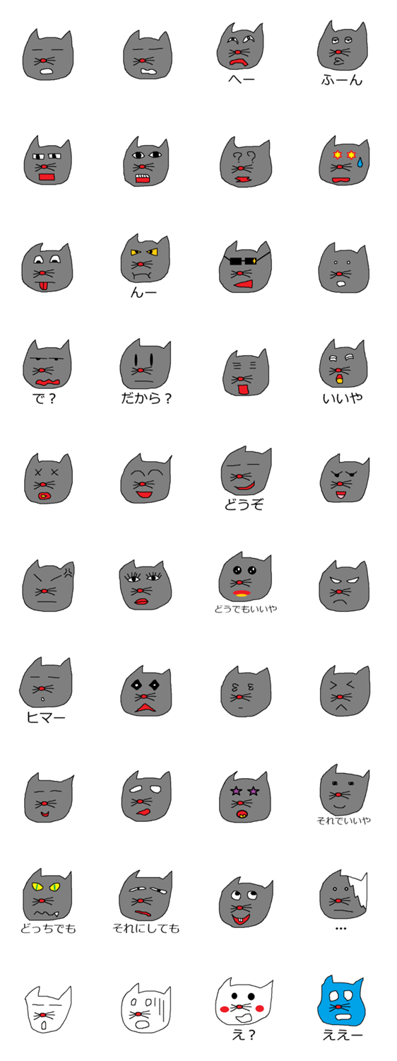 微妙な反応の猫スタンプです。ネコがあなたの微妙な反応を伝えます。ちょっとシュールな、ねこスタンプです。