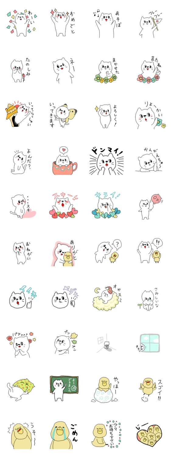 フェミニンな雰囲気のねこです。日常会話で使いやすいスタンプ。