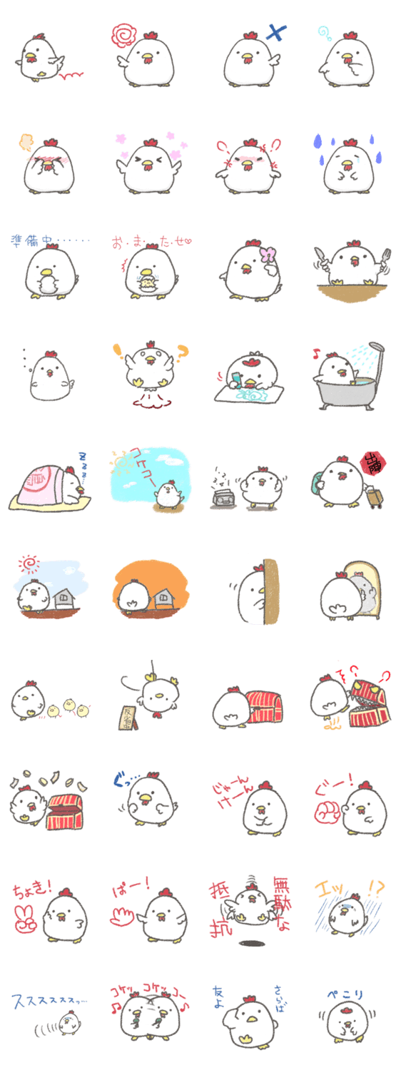 鶏のぬいぐるみ、鶏丸のスタンプです。あなたの日常にそっと寄り添います。