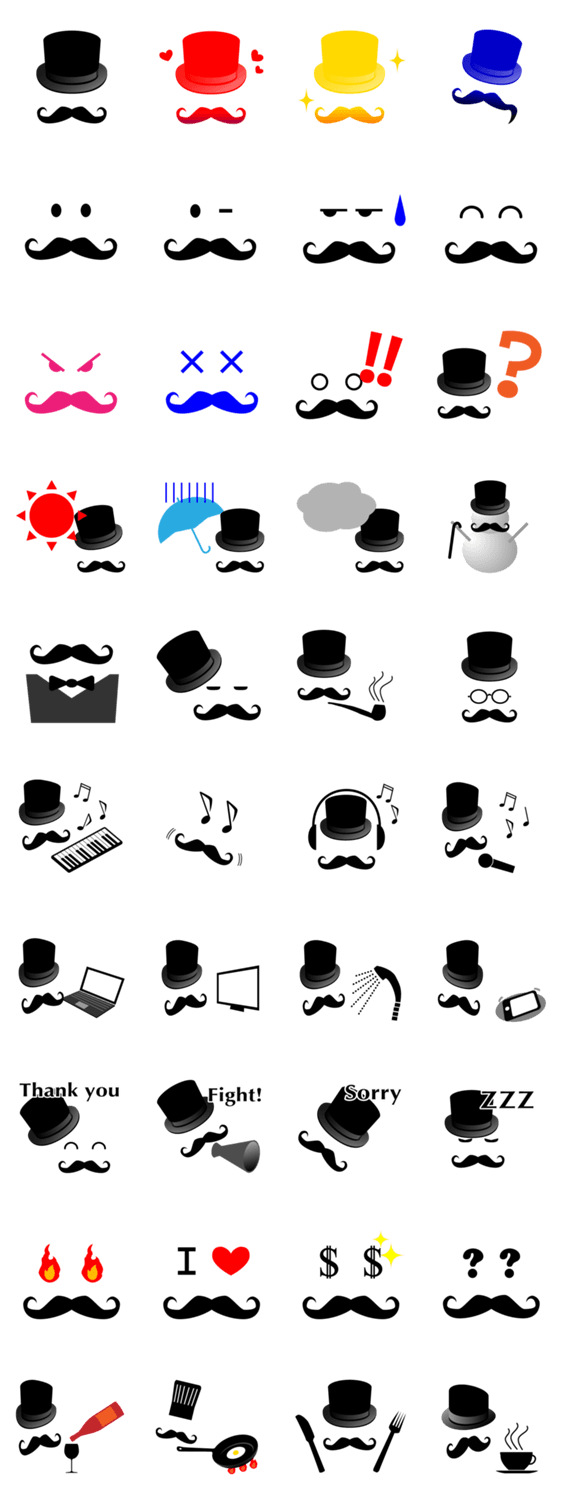 髭、可愛いですよね。ジェントルマンで英国紳士なスタンプ。友だちに送って紳士的な所を見せてください。