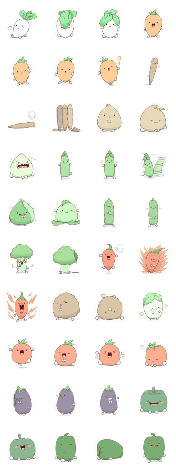 野菜がテーマのスタンプです。様々な野菜をテーマに感情や表情を意識して描きました。気に入っていただけると嬉しいです。