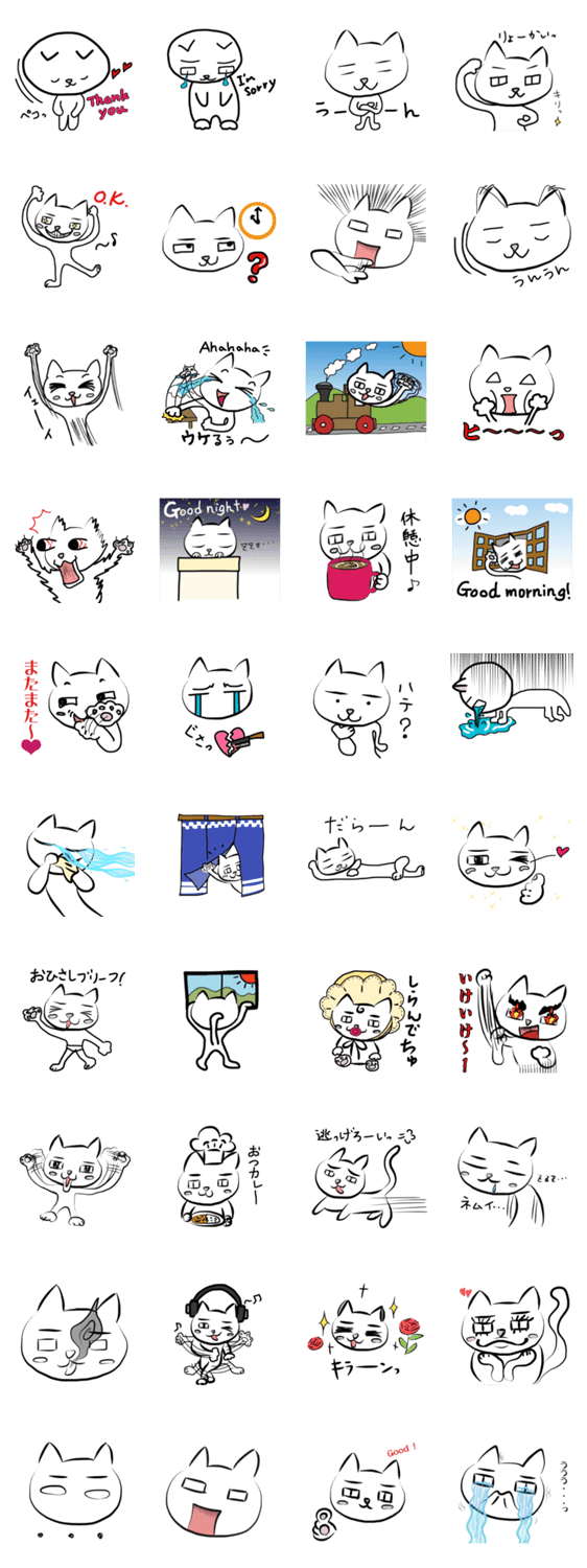 表情豊かな リアクション白ねこスタンプ -LINEスタンプマニア
