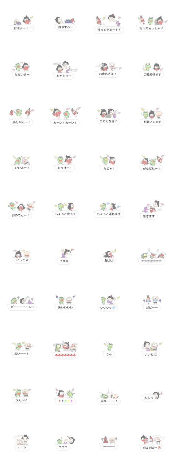 妖怪は控え目なので小さめです。ちょっと透けてます。普通の言葉を使います。でもかわいいよ!(吹き出しサイズはトーク画面の通常サイズ、背景白OK、透過度50%)
