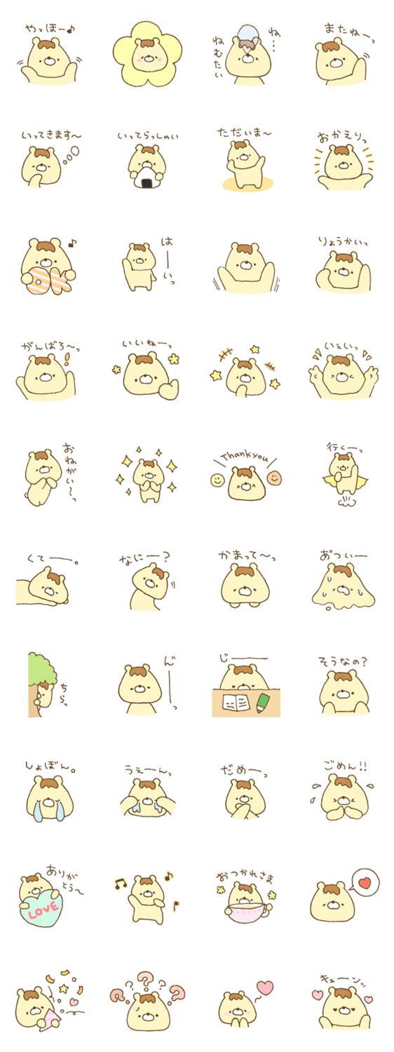 プリンなクマさんのスタンプ5です。よく使う言葉や 返事のスタンプ多め♪たくさん使ってください!
