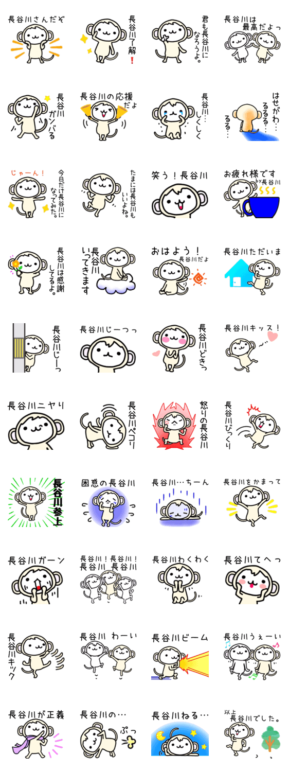 サルの長谷川さん名前スタンプです。長谷川さん以外の方も使えます。よろしくお願いします。