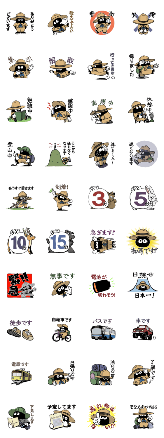 アウトドア等スカウト活動を続けるさんちゃんのラインスタンプそのパート2。数字の組み合わせも入れ、より実用的に作りました。