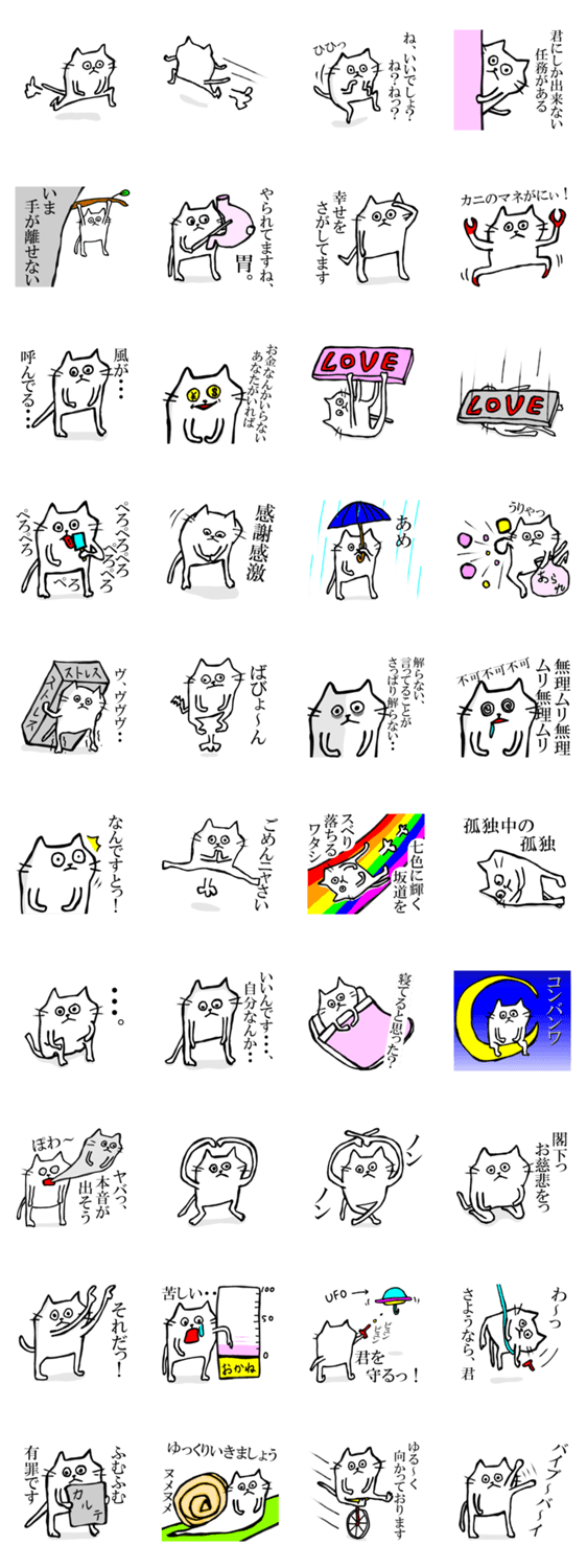 まるい目をしたニャンコのスタンプ。だいたいの感じで使ってみてください。
