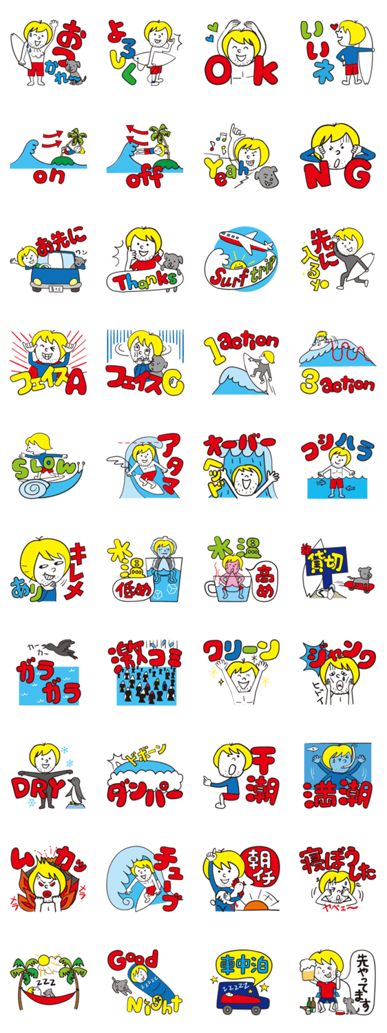 サーファー向けに波情報をレポートするときに楽しく簡単に使えるスタンプ♪