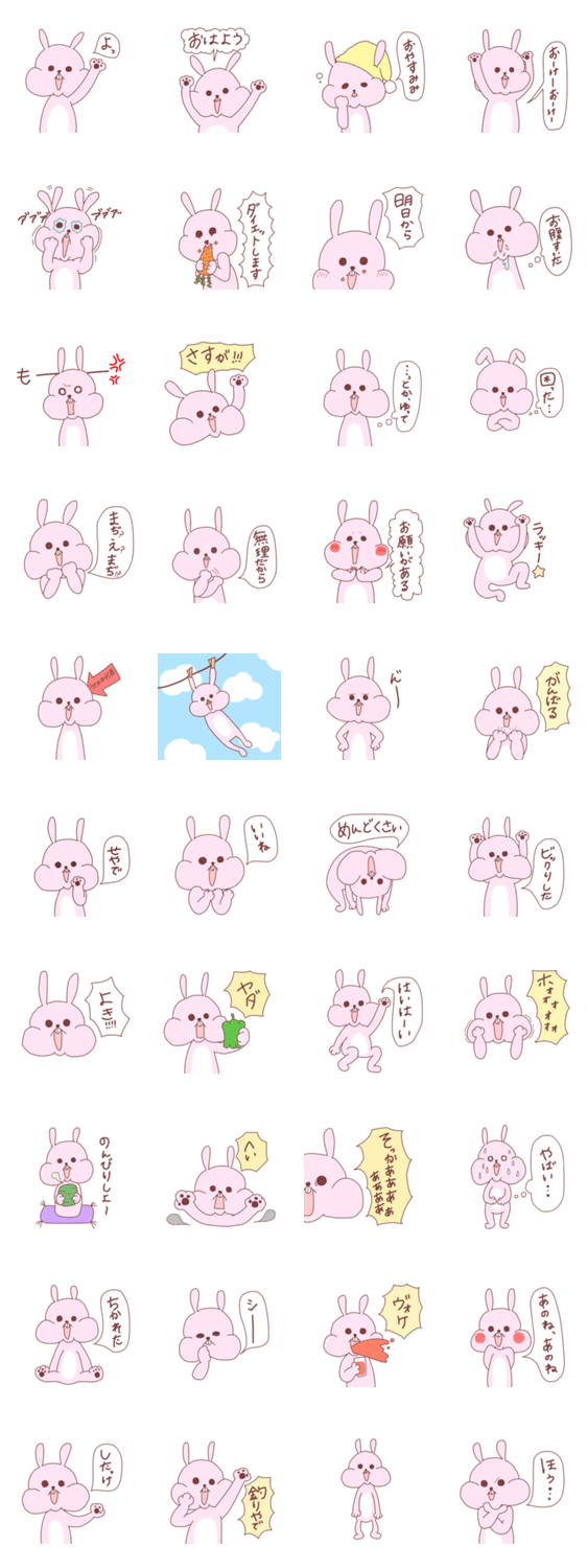 うさみみ代表の宇佐美さんが日々の気持ちをつぶやいているスタンプ。うさぎ好き、うさみみ好きさんに送ってみよう。