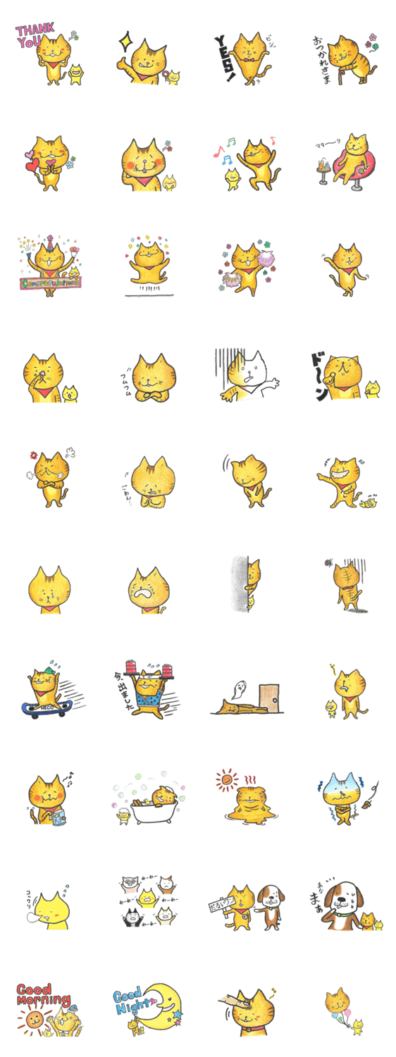 色鉛筆で描かれた温かみのある、アナログゆるふわ『こねこねこねっこ』スタンプ第1弾★微妙な表情やポーズ…使い方は、あなた次第♪すべての猫好きのために(*^^)/