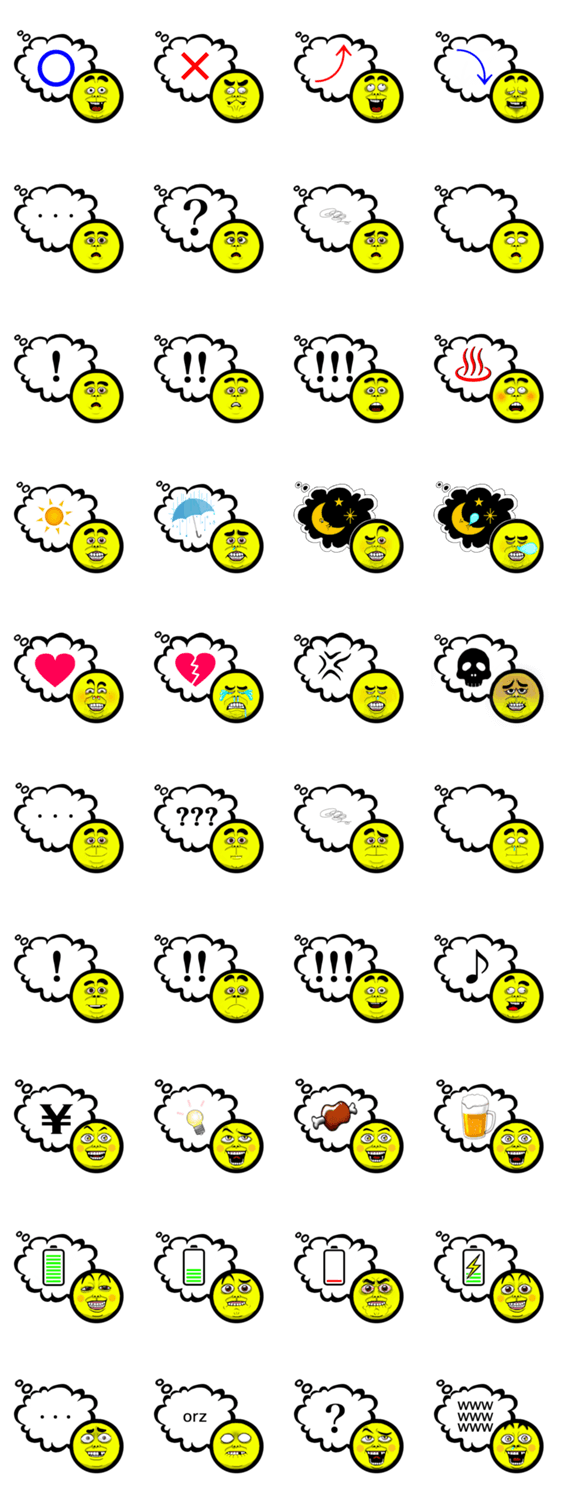 どこか憎めない顔面アイコンが言葉にしづらい微妙なニュアンスを伝えてくれます。相手をおちょくりたい時や曖昧な返事で煙に巻きたい時などに是非!