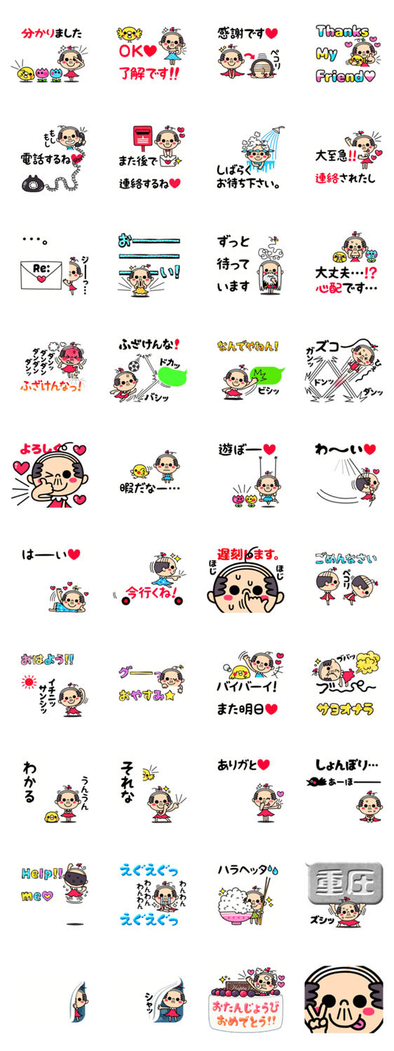 白い吹き出しに小さい乙女おやじを合わせました。日常の中で使いやすい文言となっております。ハゲおとめスタンプ第6弾!!