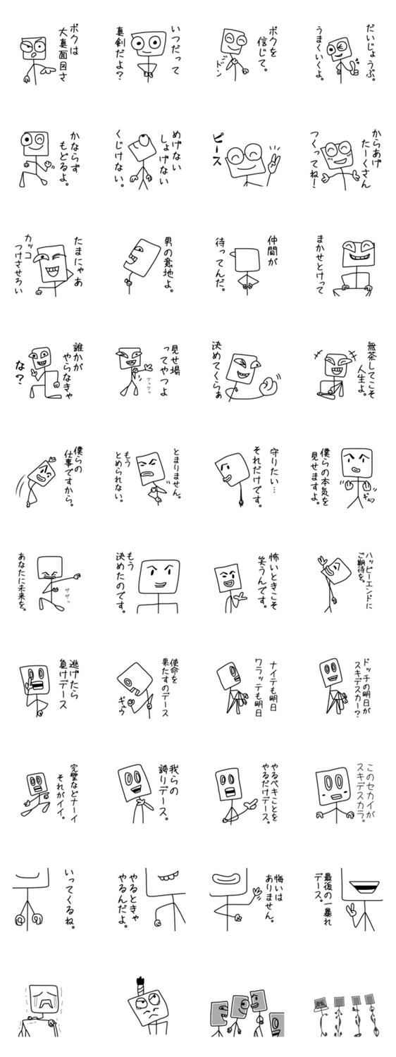 適当すぎるスタンプのキャラの、適当じゃないスタンプです。決め台詞集になっています